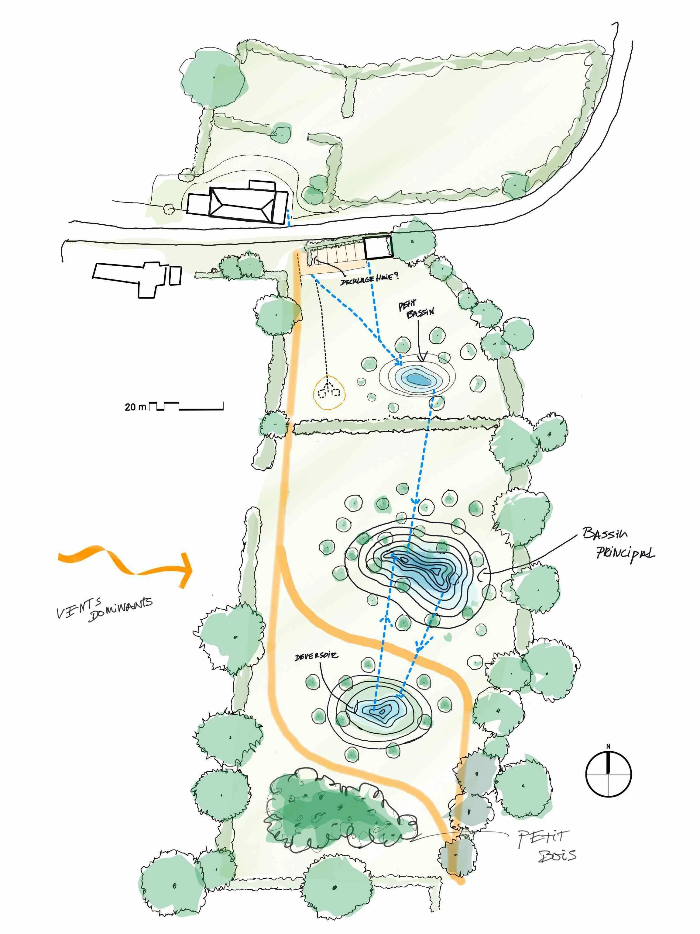 Façonner le paysage en privilégiant la gestion des eaux pluviales en agriculture.